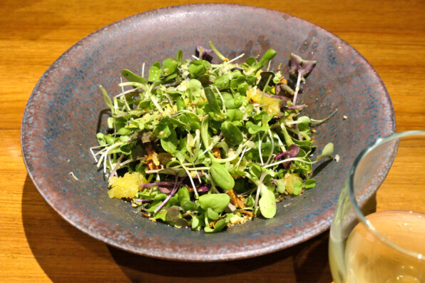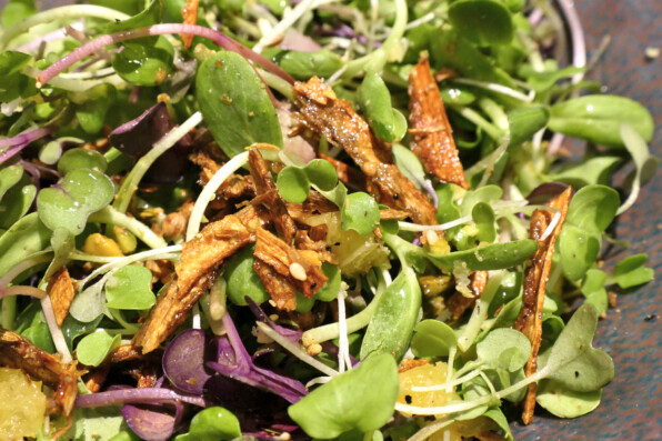 マイクロハーブとごぼうチップのクリスピーサラダ