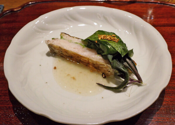 きゅうり好きのわたしにはたまらない斬新なオランデーズソースでした。パリパリの食感をまとったほろ苦い鮎。よいですー。