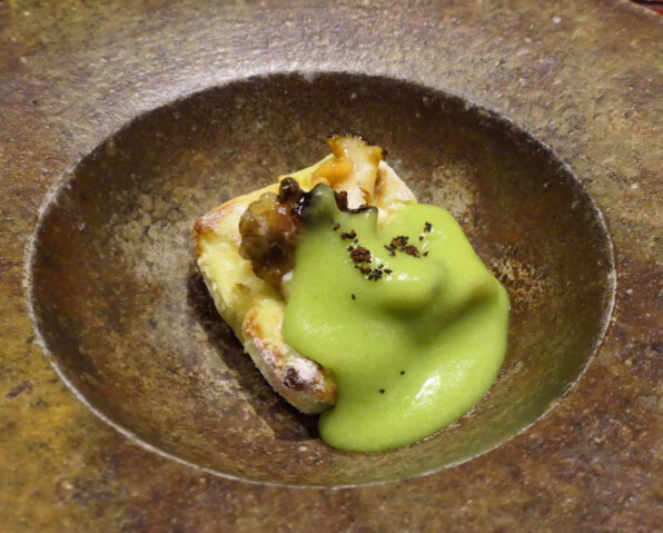 ●うすい豆豆腐。炙ったさざえ。うすい豆のすり流し。ネパール山椒。