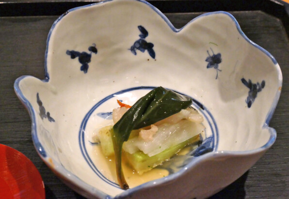 ●食前酒「稼ぎ頭」をひと口いただいた後、先付は、