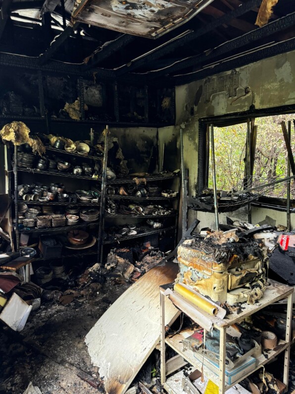 お客さまとスタッフの皆さんが全員無事でいらしたというのが、何よりよかったことですが、調理場も器ストックの場所も燃えてしまったということ。