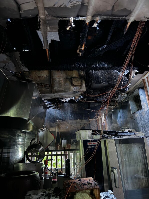●6月15日(土)18時半頃、営業時間中、お客さまが入られている状態で、2階から出火。原因はたこ足配線か漏電か、調査中ということです。