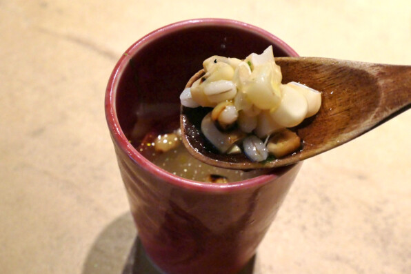 久御山の白とうもろこしのスープ、かぼすの香り