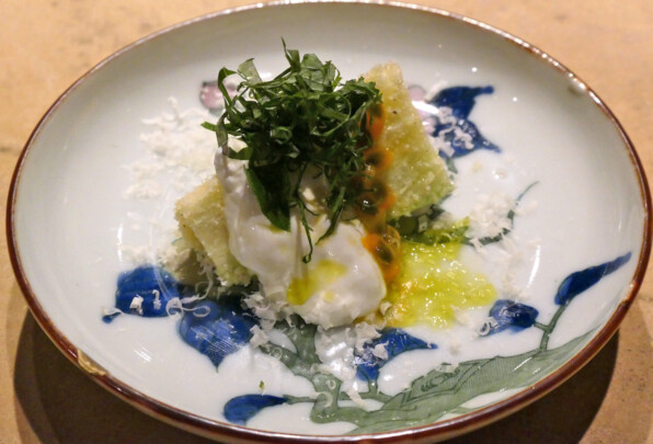 ●水茄子とストラッチャテッラ、パッションフルーツ。