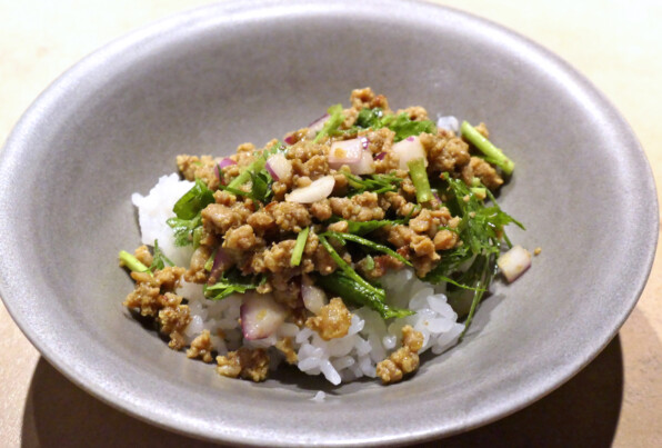 ラオスのラープムーというお料理、これは本来サラダ仕立てのものらしいけれど、スパイシーな豚ひき肉にパクチーやミントやディルがたっぷり合わされていて、カレーと同様、白ご飯と理想的に調和して、旨いったらなかったのです(*_*)(*_*)(*_*)