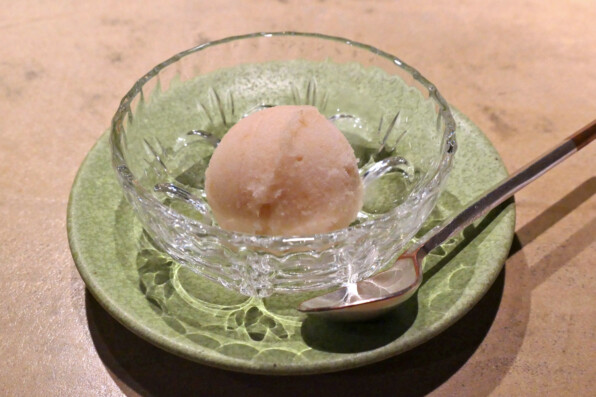 ●食後は白桃と新生姜のソルベを選択、最初から最後まで生姜の香りに縁取られた食事でした。