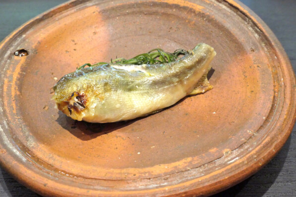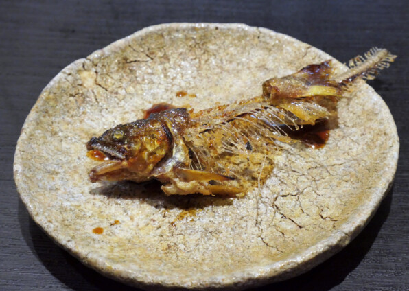 ●そして、(次の写真のひと皿をはさんだ後に)、骨部分がパリパリと香ばしく揚げられたものが供されました。