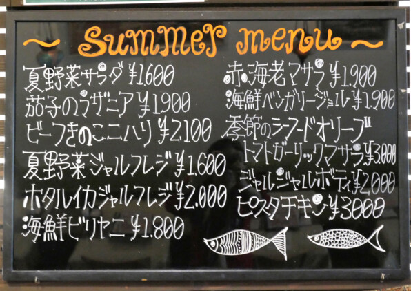 ●グランドメニューとは別に、黒板書きされた夏のメニューです。
