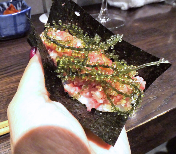 海苔がめちゃくちゃにいい香りで美味、肉旨い旨い旨い、粒粒の海ぶどうの食感楽しい~~で、口の中が万華鏡のように😍😍