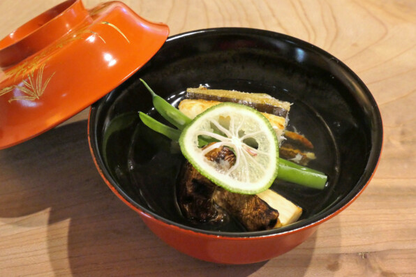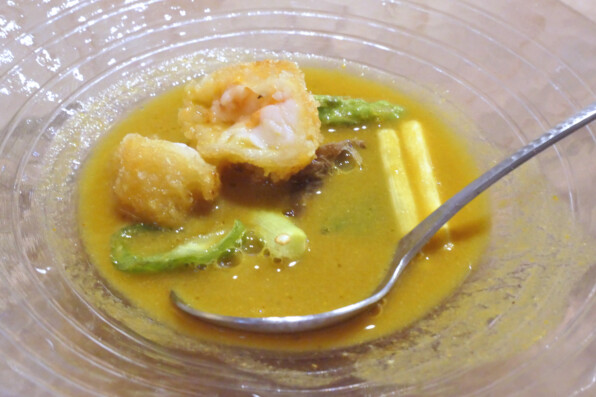 和風ビスク。アスパラガス、万願寺唐辛子、エリンギ。
