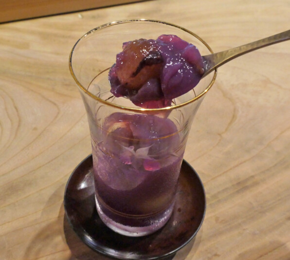 ●食後の甘味は、まずぶどうのジュレ。中にみっちりピオーネと巨峰入り。