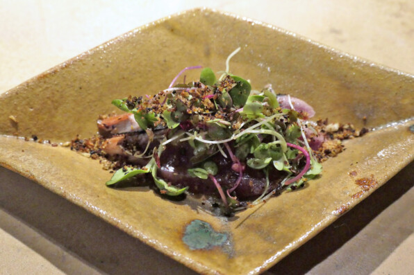 のっているマイクロハーブは土で栽培されたものということ。野性味のあるしっかりした味。