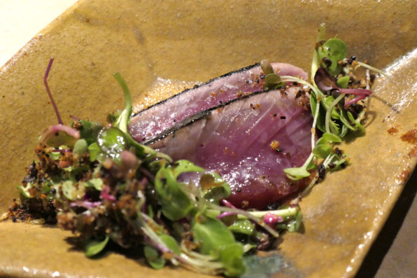●長崎のやいと鰹、ハーブサラダ、鉄火麹パン粉。