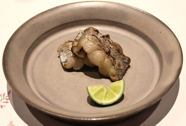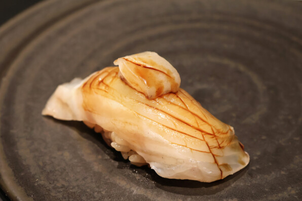 あおりいか、ひらめ、真鯛、縞鯵、かまとろ、塩釜の熟成まぐろ、あわびとその肝ソースでリゾット風、のどぐろ、赤海老、蝦夷ばふん雲丹、宮﨑牛の炙り、穴子。