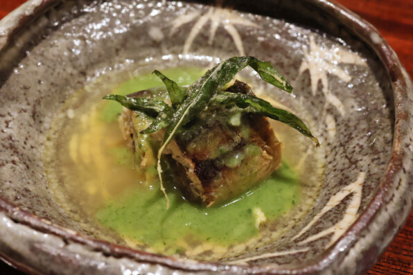 揚げた茄子はざくっとほぐしてあって、もとのきれいな色のままで、にしんやおだしの味を引き立てていました。