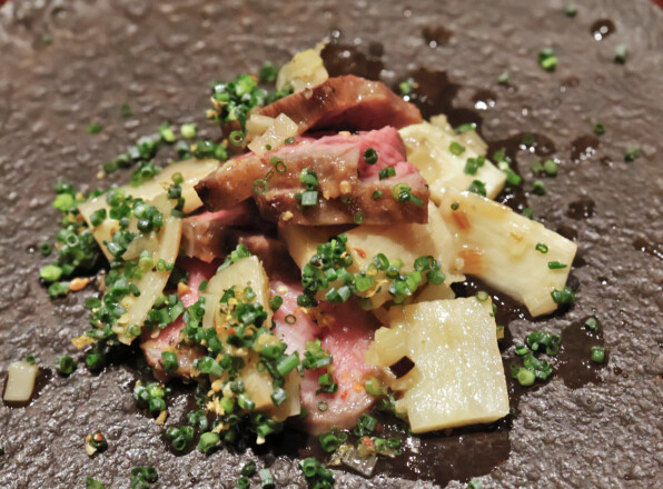柑橘の木酢(きず)の香りを移した、木酢酒焼き。