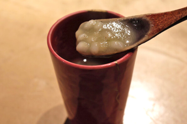 すりつぶした豆と、白味噌と柚子胡椒を加えてとろりとしたスープが完成。