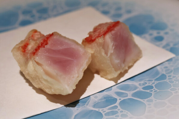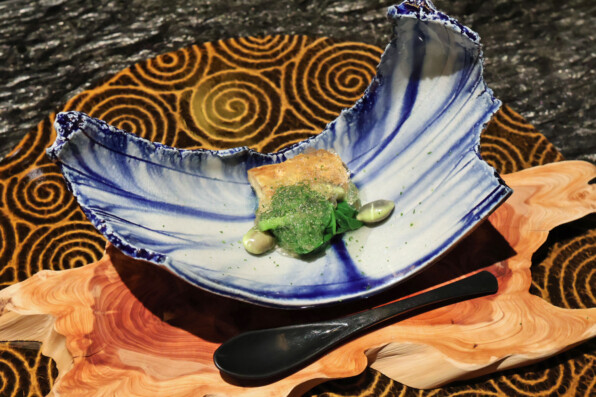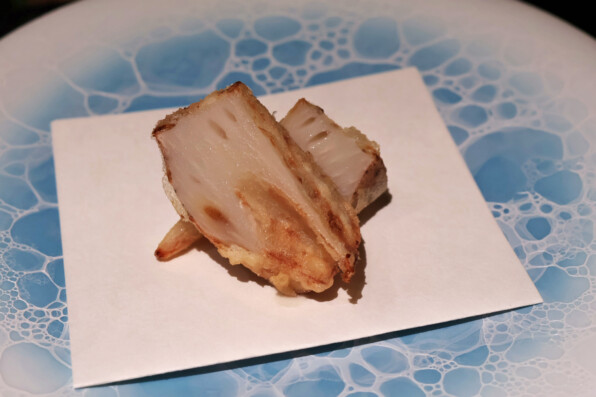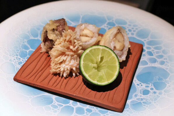 ●ぐじまつ。白甘鯛で松茸を巻いたもの。ぐじのうろこパリパリと。