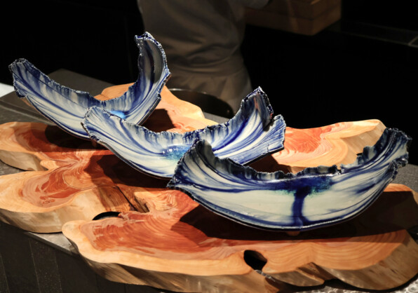 ●いともハッデーな器プレゼンです。もちろん三浦雅彦さんのものです。