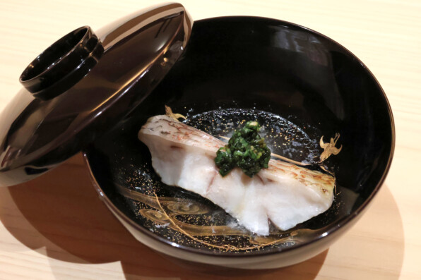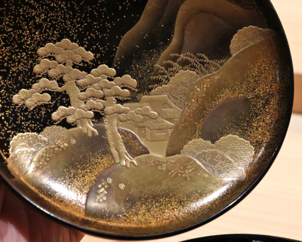 ●いとも美しい蒔絵のお椀で、酒蒸しが供されました。