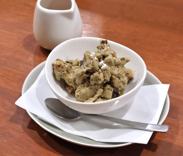 ●ほうじ茶のセミフレッド(柔らかいアイスクリーム)をお願いして・・・そこに、アマレットをかけたのでした😂😂おいしかったですよーー✨️