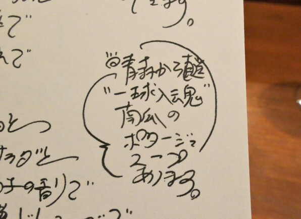 ●シェフののろっち=野呂和美さんによる手書きメニュー、味があります😂😂😂