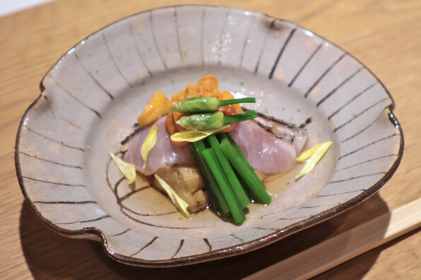 ●炙り黒むつと焼き茄子 生雲丹