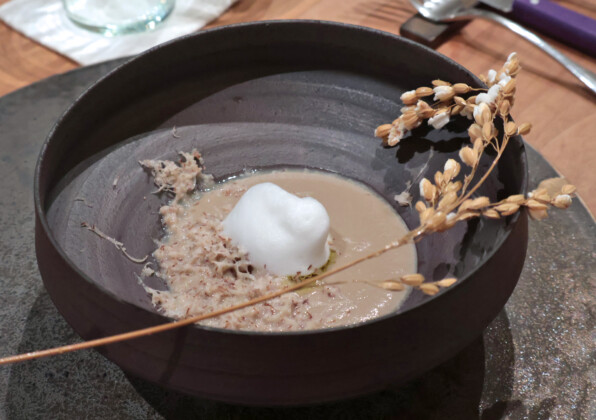 ●マッシュルームのスープに、秋トリュフ。揚げたお米のプチプチがアクセント。