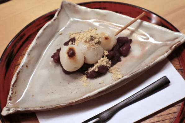 ●りんごと洋梨のシャーベットの後、きなこ餡団子。
