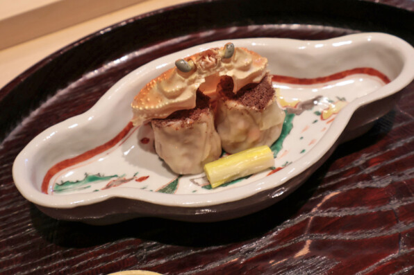●白ご飯の後、オプションご飯は3ヴァリエーション展開されて、チャーシュー丼、まぐろ丼、そして、せこ蟹天津飯✨️と供されました。どれかひとつでもいいし全部でもどうぞと。