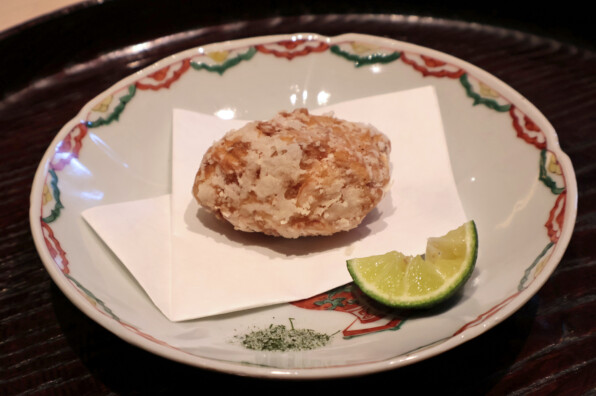 ●フライドふぐ。青海苔山椒塩、すだち。