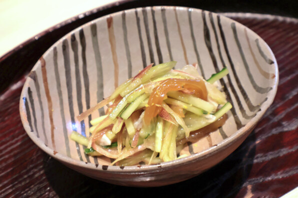 ●ふぐ皮と香味野菜のぽん酢和え。