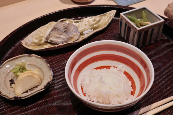 添えられた魚は、うおぜ=えぼだいの塩焼き。