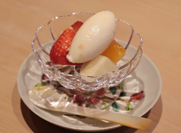 ●金柑入りヨーグルトアイスクリーム。いちご(あまおう)、オレンジ(紅まどんな)、青森県産の、群馬りんご。