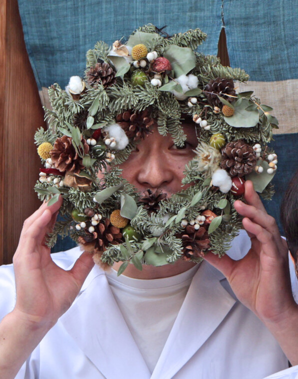 ●12月ですねー、クリスマスのリースを手に撮影です😊
