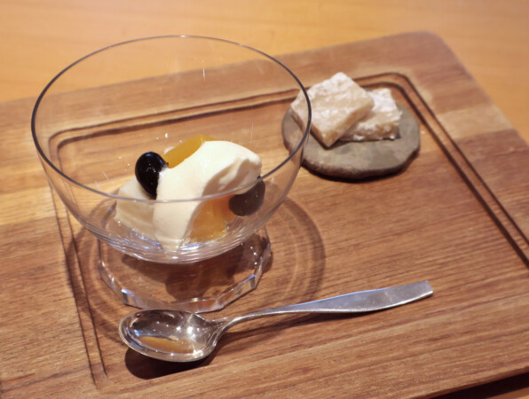 甘麹豆乳かんとオレンジかん、黒豆、乳清クリームと。