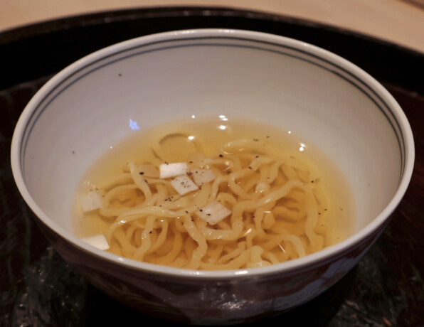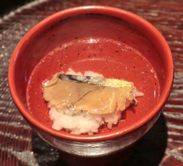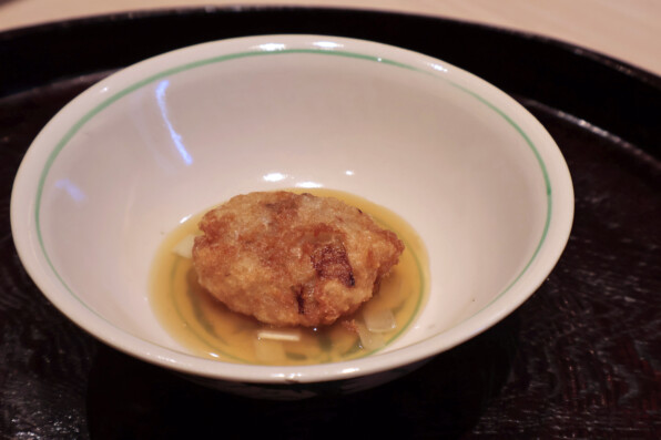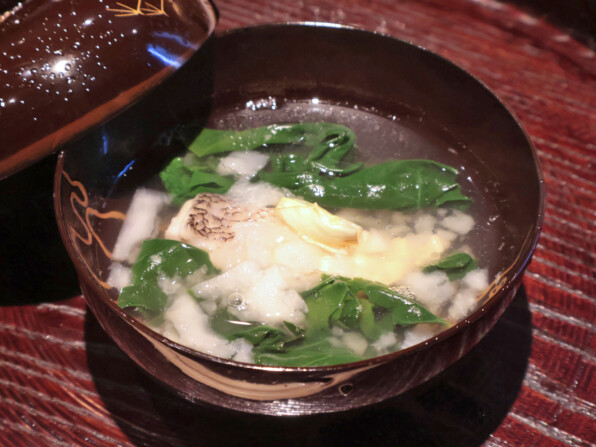 昆布だしですっきりさらりと仕立てられていますが、途中でかつおぶしを上からかけてくださって、風味の変化を楽しみました。