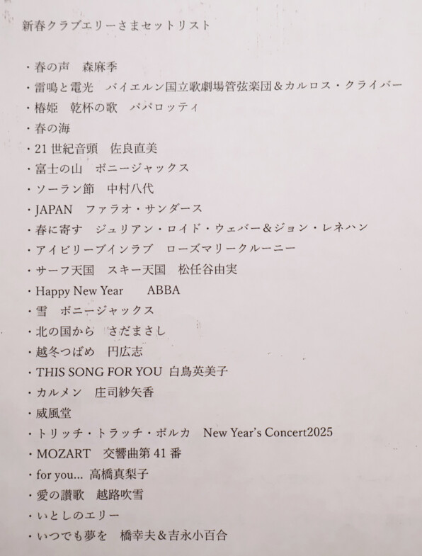 ●新年らしい曲、冬の曲、春を感じさせる曲、そして、いとしのエリー をありがとう\(^o^)/