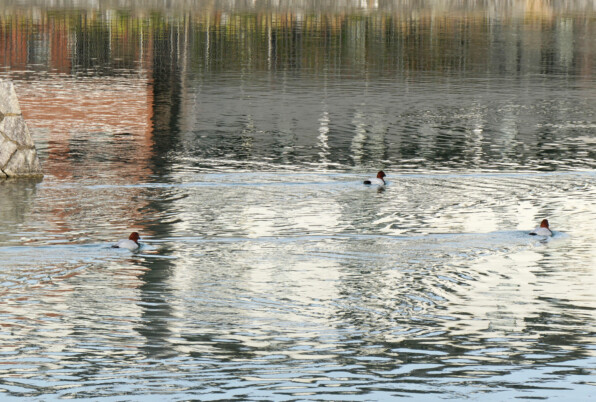 てんでばらばら、他の普通の鴨ちゃんたちとざらざら泳いでいるところから、たまたま近くに寄ったところを撮りました。