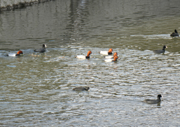 くちばしが白くて、あとは真っ黒なオオバンについても、こんなにまとめて見たのは初めてです。
