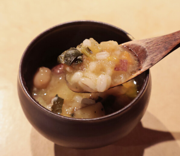 野菜は、玉ねぎ、にんじん、トマト、カーボロネッロ(黒キャベツ)、デストロイヤー(じゃがいも)、白いんげん、うずら豆。