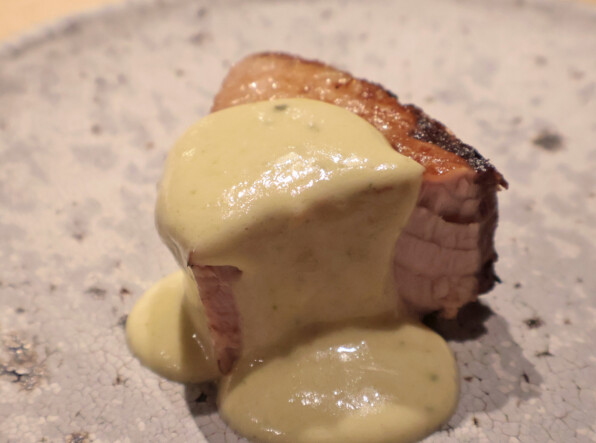 ピルピルとはスペインの、オリーヴオイルと鱈を使ったソースで、とろりんと寒ぶりに旨味を添えていました。今回のこれは、だしとしてくえの頭も使っていると。