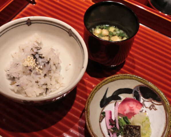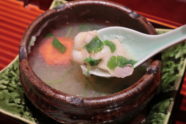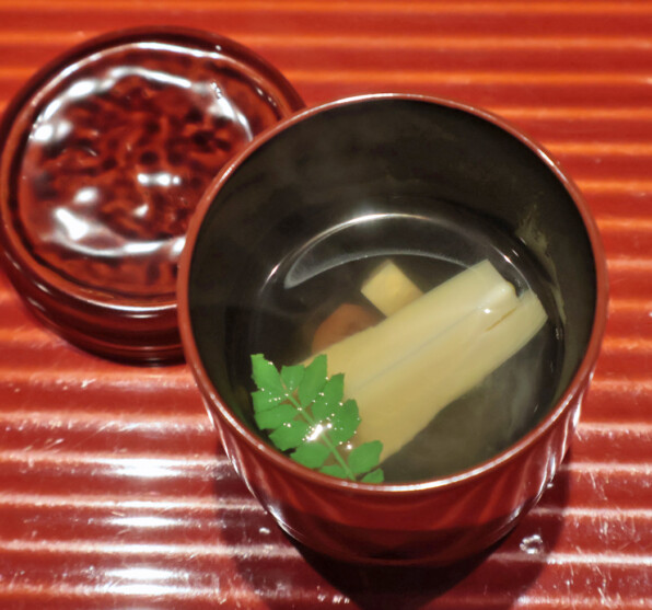 ●小さなお吸い物、徳島の筍、梅干し、とろろ昆布、木の芽。