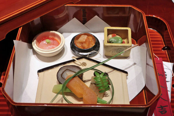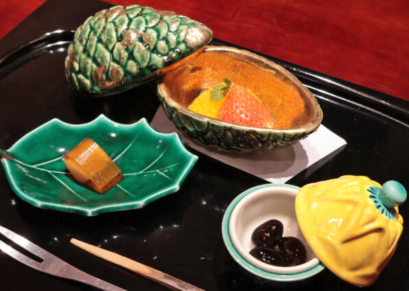 ●さくらももいちご(福島)、オレンジは津之輝(つのかがやき、宮﨑)、のし梅に白あん、黒豆。