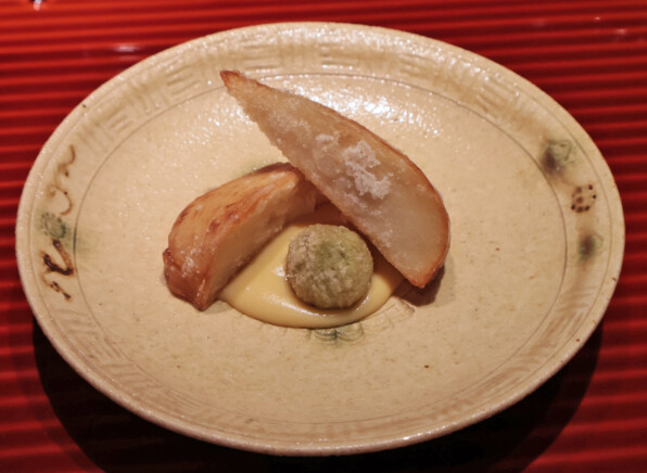 だしで炊いた海老芋をさくっと揚げてあって旨いです😭