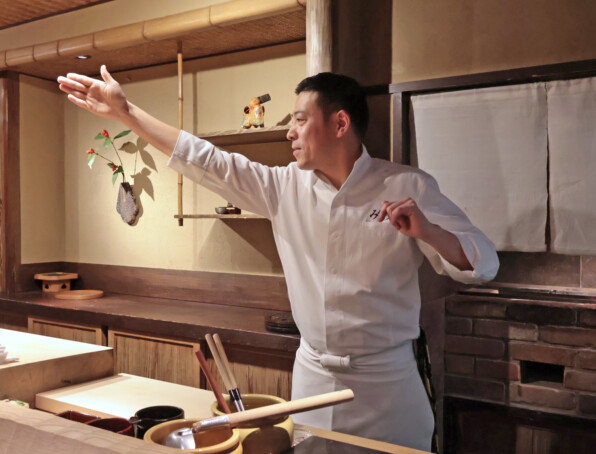 ●伏見の「延寿万年」を食前酒にひと口いただきお料理スタートです。