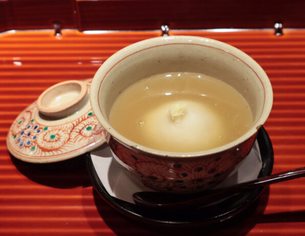 ●葛打ちされた九十九里浜のはまぐり、かぶらのみぞれ仕立て。