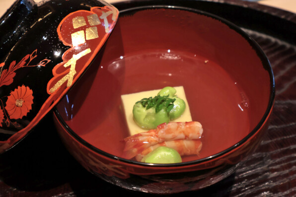 ●お椀は、このこ入り玉子豆腐、車海老、そら豆、木の芽。