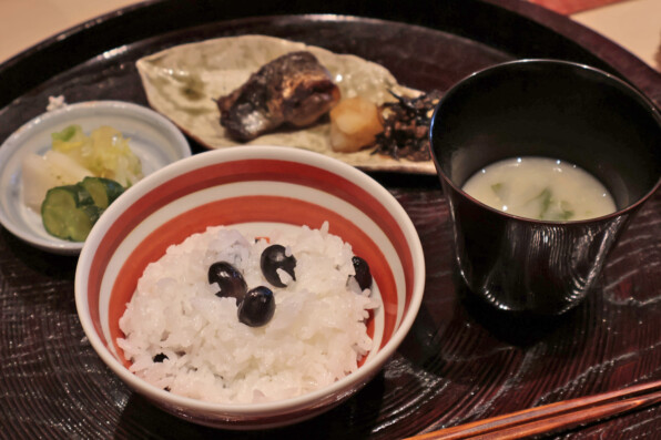 ●黒豆ご飯、青森風粕汁、鰯塩焼きに大根おろし、子持ち昆布佃煮。