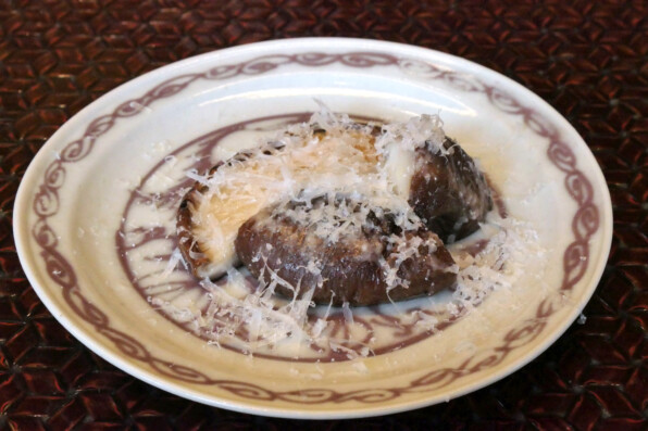 金柑ソースたまらん。昆布締めで旨味がついたえのき、手羽と調和していました。これもよきひと皿。